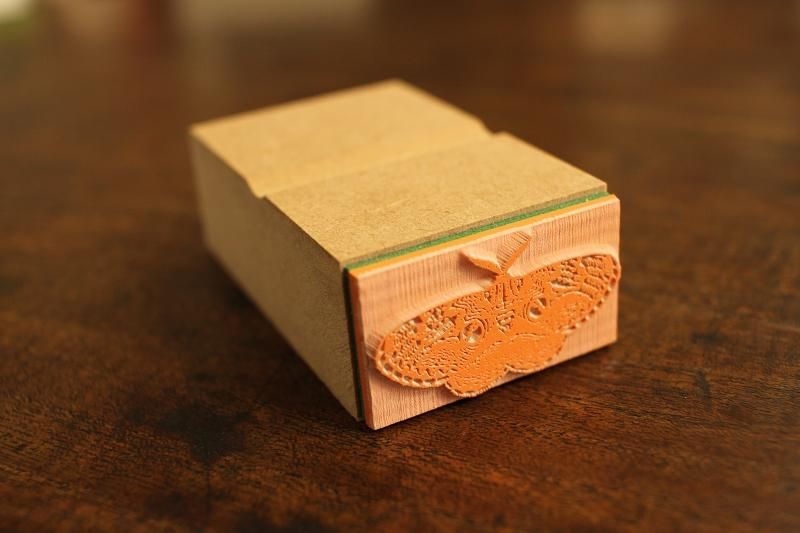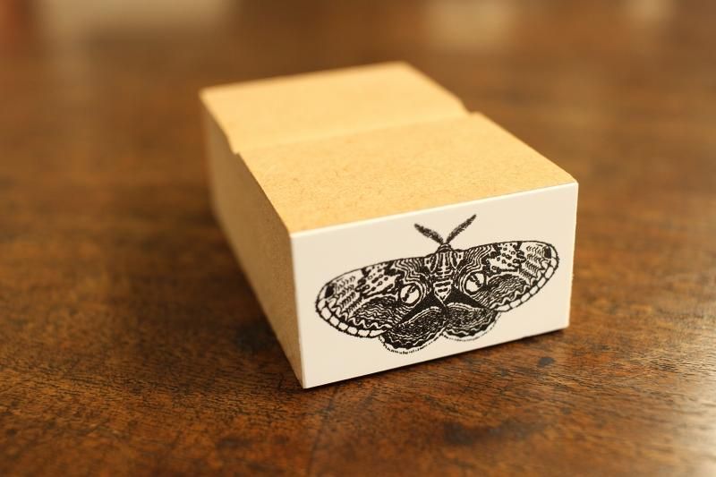 春に現れるフォトジェニックなガ、イボタガのスタンプ。持ち手は20×36mm。