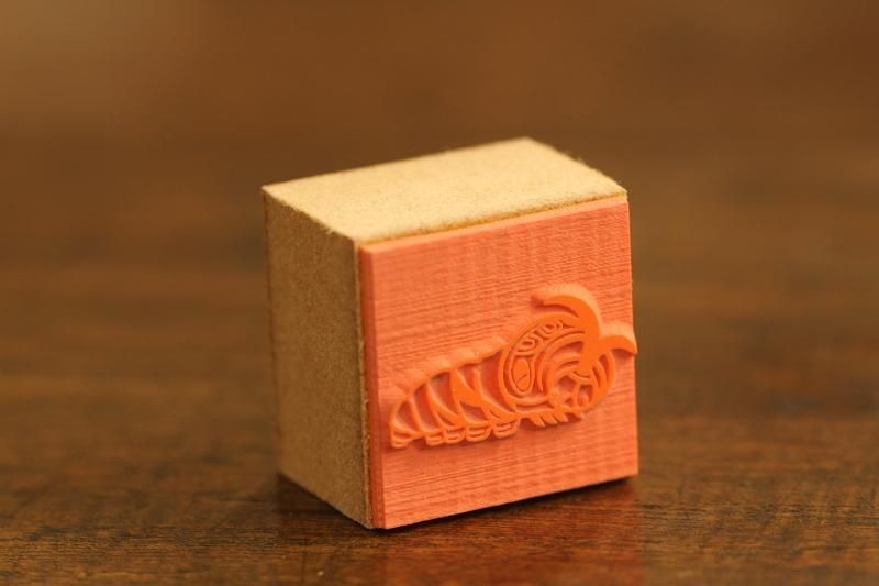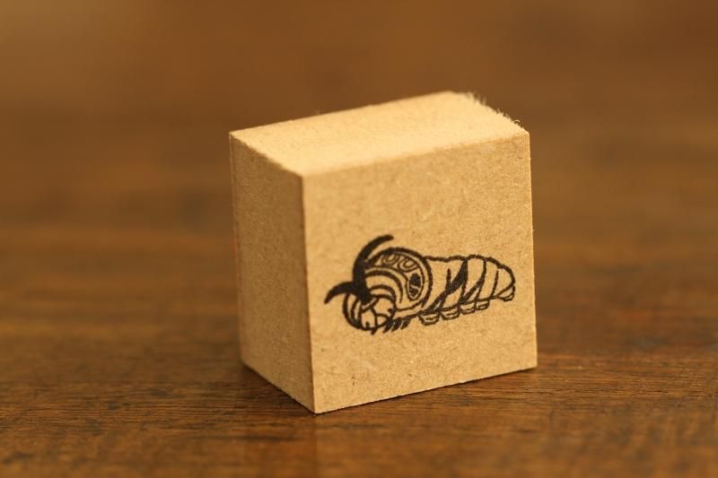 肉角を出して威嚇するアゲハ幼虫のはんこ。持ち手は26×26mm。