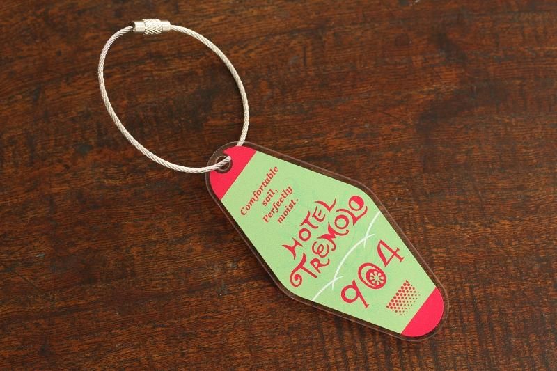 虫のためのホテル、〈ホテル トレモロ〉のキータグ。リング部分は丈夫なワイヤー仕様になりました。