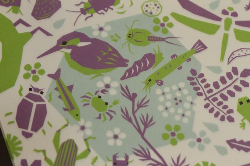 A3サイズの包み紙。水生昆虫、水鳥、魚、両生類などなど、水辺の可愛い生きものがいっぱいです。5枚入り。