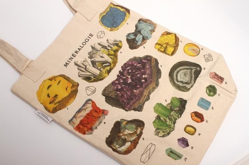 博物図鑑モチーフのイラストがプリントされたトートバッグ。持ち手が長く、肩にかけたときも窮屈さがありません。底にはマチがあり、厚みがあるものも入れられます。裏面は無地です。