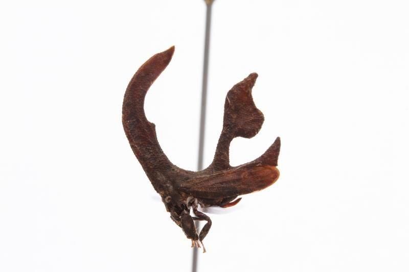 もはや何の形なのか分からない、異様な姿のツノゼミ。体高1cmを超える大型種です。